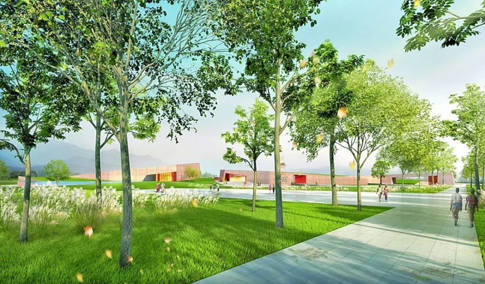 该建筑的设计理念强调与火把广场相呼应,与湿地环境相融。(效果图)