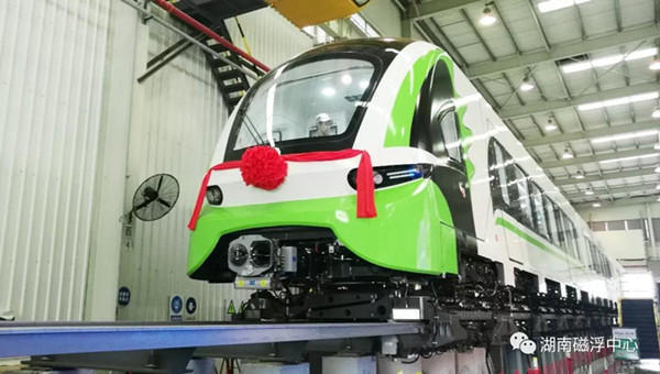 时速160公里磁浮列车在中车株机公司下线。
